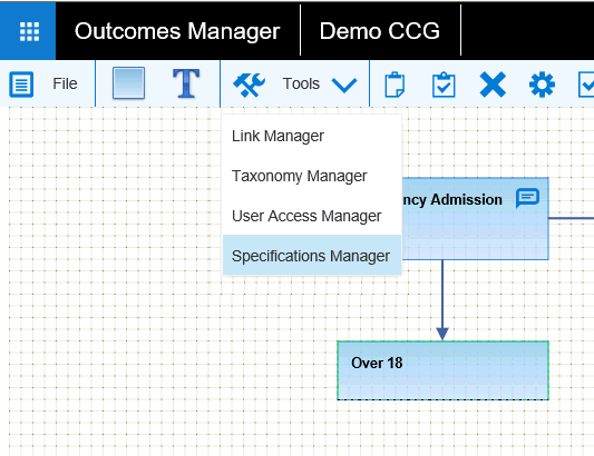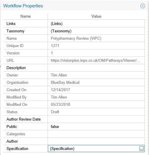 Then within the Workflow Properties window, highlight the Specification section and click on the three dots button to open the Specifications Manager entry screen..