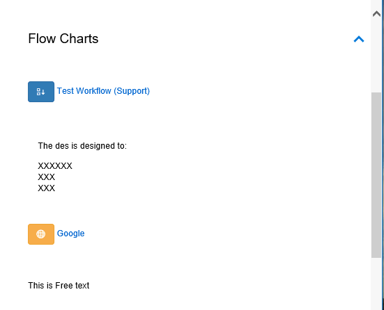 A node within a Workflow can be linked to Free Text that allows the designer to display text that wouldn't necessarily fit inside the Workflow node.